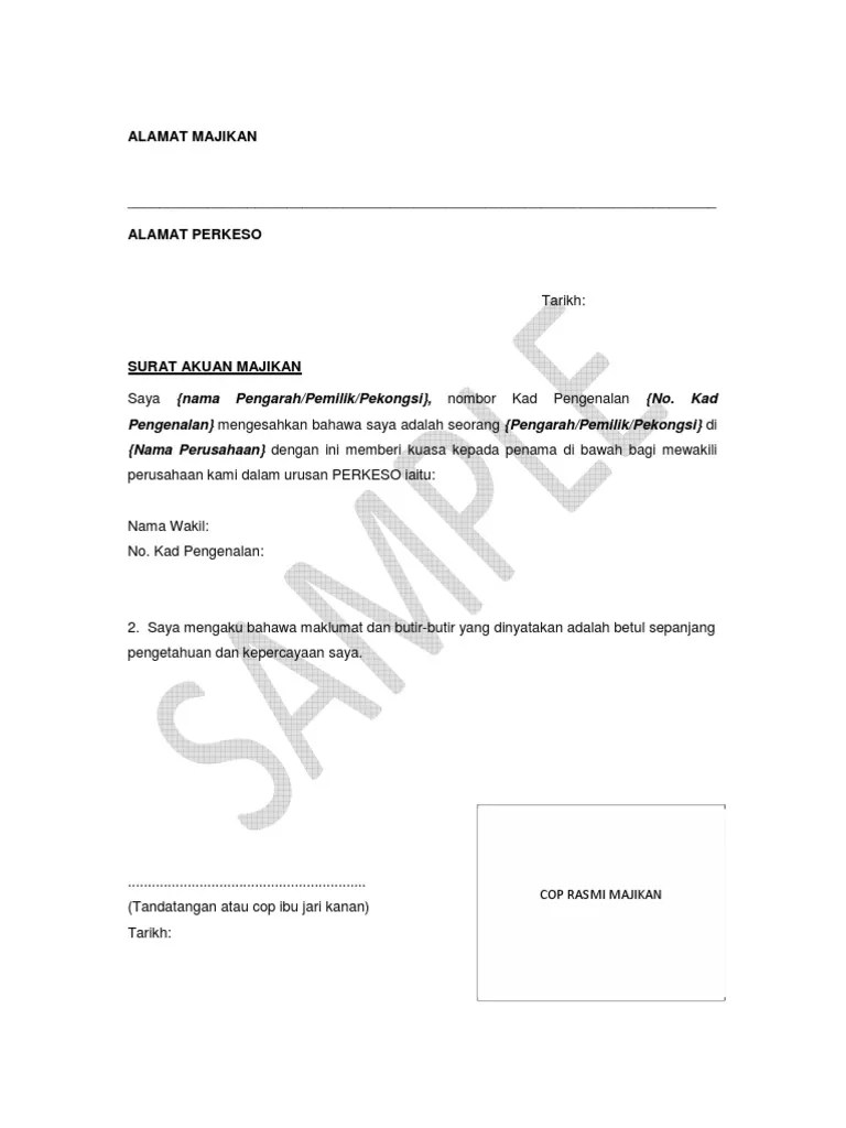 Contoh surat pengesahan majikan dan jawatan. Contoh surat pengesahan majikan dan jawatan. Contoh surat akuan majikan perkeso ingin memohon pinjaman atau memohon perkerjaan yang mana memerlukan anda mendapatkan salinan surat . Format surat confirmation daripada majikan untuk tujuan pinjaman, beli rumah, sambung belajar dan sebagainya. Muat turun surat pengesahan majikan untuk pinjaman bank beli rumah urusan rasmi edu bestari. Ketua pengarah imigresen malaysia jabatan imigresen malaysia . Sebagai kakitangan sesebuah syarikat, anda memerlukan contoh surat pengesahan majikan atau surat pengesahan jawatan semasa ingin membuat . Koleksi contoh surat pengesahan majikan terbaik 2022 untuk lantikkan jawatan pekerja swasta / kerajaan selepas tempoh percubaan. Anda boleh edit dan masukkan maklumat sendiri. Contoh surat pengesahan majikan untuk beli rumah, buka akaun bank, pinjaman bank, urusan rasmi, memohon bantuan, pendaftaran upu. Ini adalah contoh surat pengesahan jawatan dan pengesahan majikan yang mudah dan ringkas. Untuk makluman anda, disini kami akan kongsikan contoh surat pengesahan majikan swasta atau kerajaan untuk jawatan pekerja atau contoh surat . Maksud surat pengesahan majikan ni adalah surat yang mengesahkan bahawa pekerja tersebut .